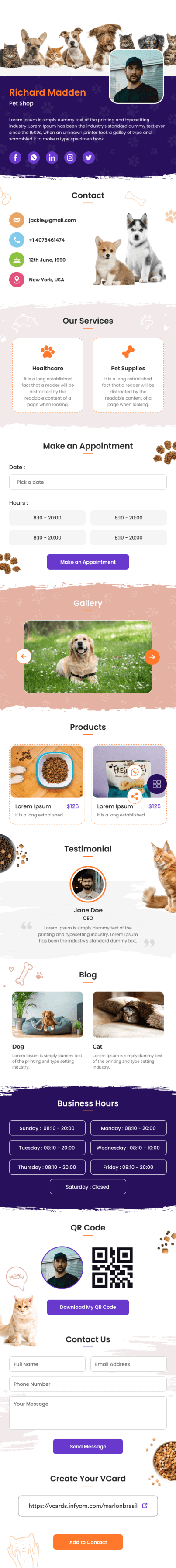 Pet Shop vCard